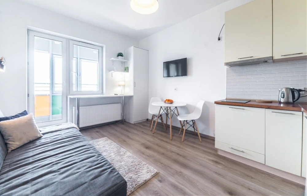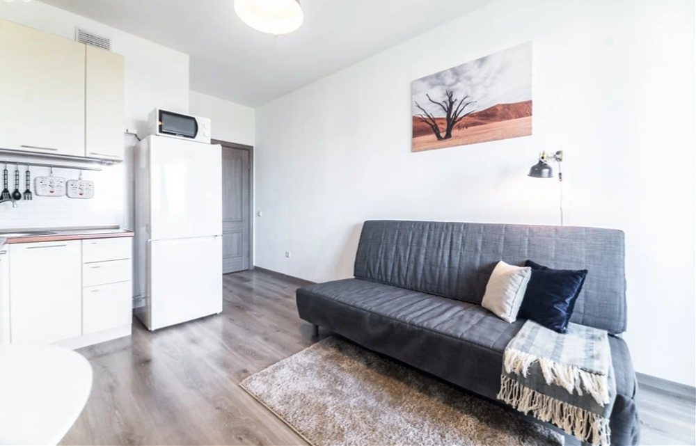 Сдается на длительный срок светлая, уютная квартира-студия 23 кв. м. В квартире имеется все необходимое для проживания: стиральная машинка, холодильник, варочная панель, микроволновка, чайник, пылесос, столовые приборы и кухонная утварь, гладильная доска и сушилка. Двухспальный диван-кровать. В квартире обустроено рабочее место в виде стола-подоконника. В прихожей установлен встроенный шкаф-купе со стеклянными дверьми в полный рост. Led-телевизор, диагональ 32 дюйма (80 см) со встроенной системой smart-tv. В квартиру проведен кабель для подключение Wi-Fi роутера Большой (5 кв.м.) застекленный балкон с освещением. Вид из окна на зеленую территорию. Квартира расположена в московском районе в ЖК комфорт-класса «Триумф-Парк», в шаговой доступности от м. «Звездная» (15 минут пешком) до аэропорта «Пулково» - 10 минут на транспорте. до развязки КАД и ЗСД – 2 минуты на автомобиле. Новый дом, постройки 2018 года. Закрытый, охраняемый двор без машин. На территории двора прогулочная зона, скамейки, деревья. На территории ЖК находятся продуктовые магазины, аптеки, пекарни и пр.
