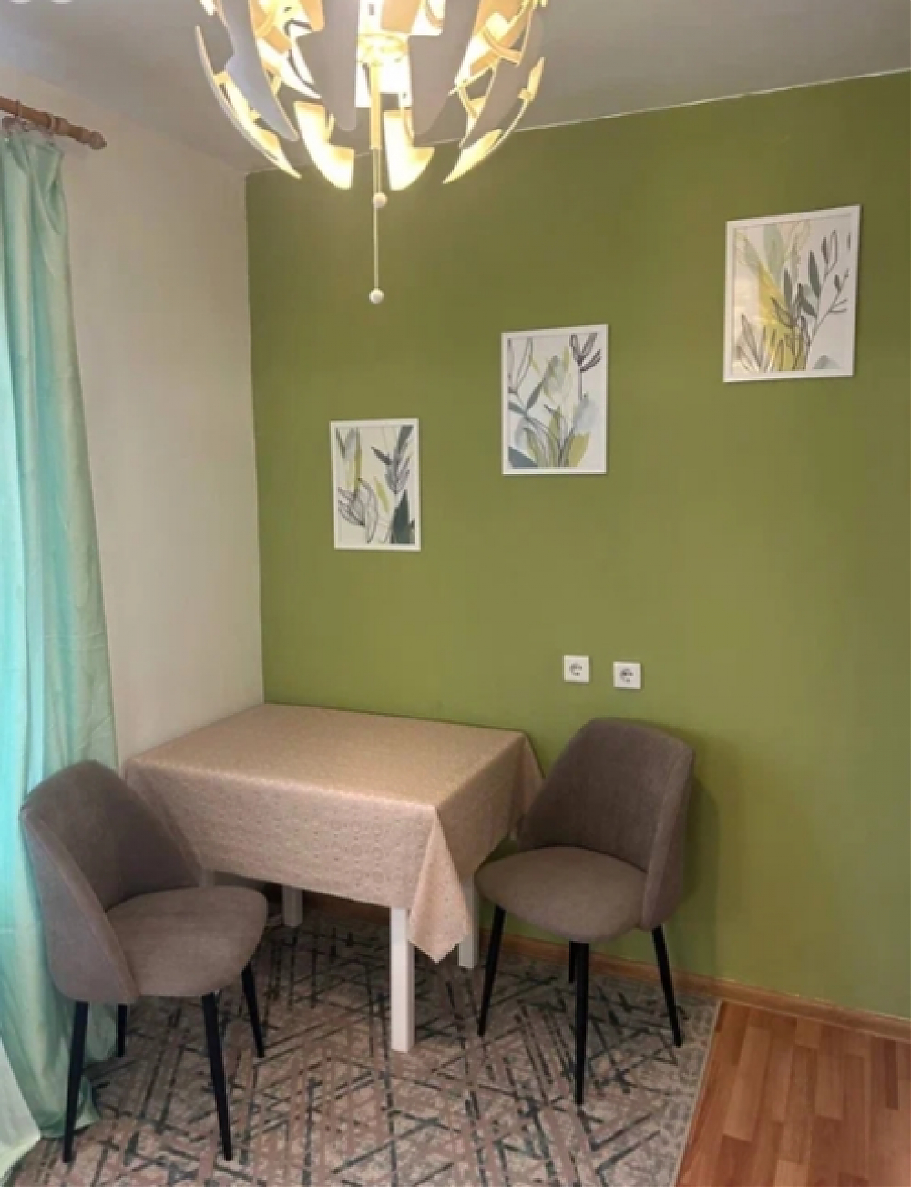 Сдается однокомнатная квартира. На кухне электроплита со стеклокерамикой, вытяжка (на фото ее еще нет), микроволновка (на фото еще нет), тостер, комбайн, кастрюли, сковородки, посуда . В квартире много мест для хранения одежды: шкаф в нише в прихожей, кладовая, большой шкаф в комнате и удобная дополнительная вешалка за дверью . В квартире есть пылесос, утюг, небольшая гладильная доска, сушилка для одежды, обогреватель .На окнах новые стеклопакеты, есть аккуратный открытый балкон