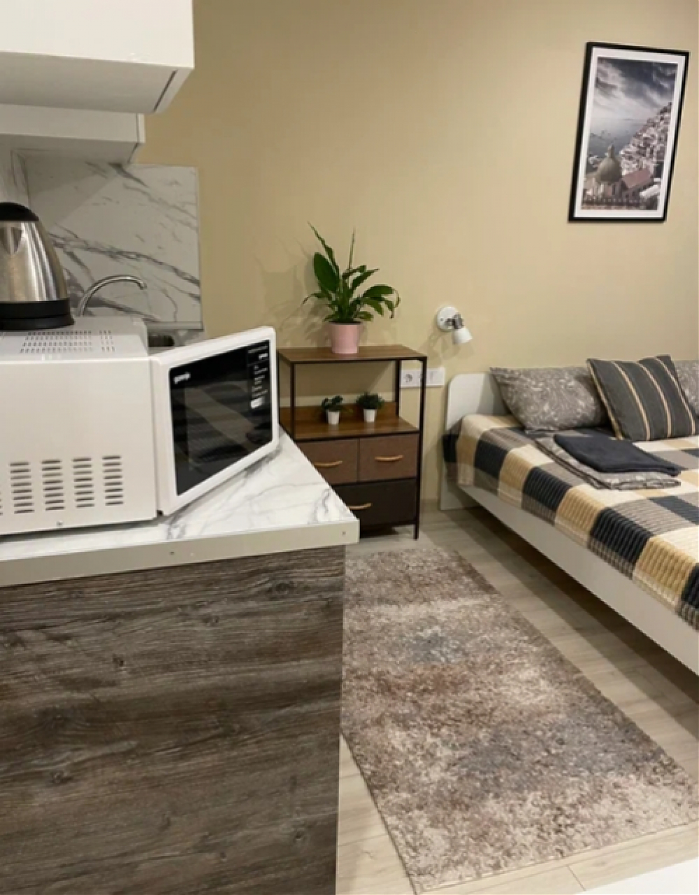 Сдается шикарная студия в новом современном гостиничном комплексе Zoom Apart у метро Черная Речка. Прекрасное расположение в центре города, стильный дизайн, консъержная служба 24/7, на первом этаже прачечная, ресторан, кулинария. Отличное место для комфортного краткосрочного и длительного проживания в центре Петербурга. В квартире есть все необходимое: посуда, полотенца, постельное белье, кухонные принадлежности, чайник и фен.