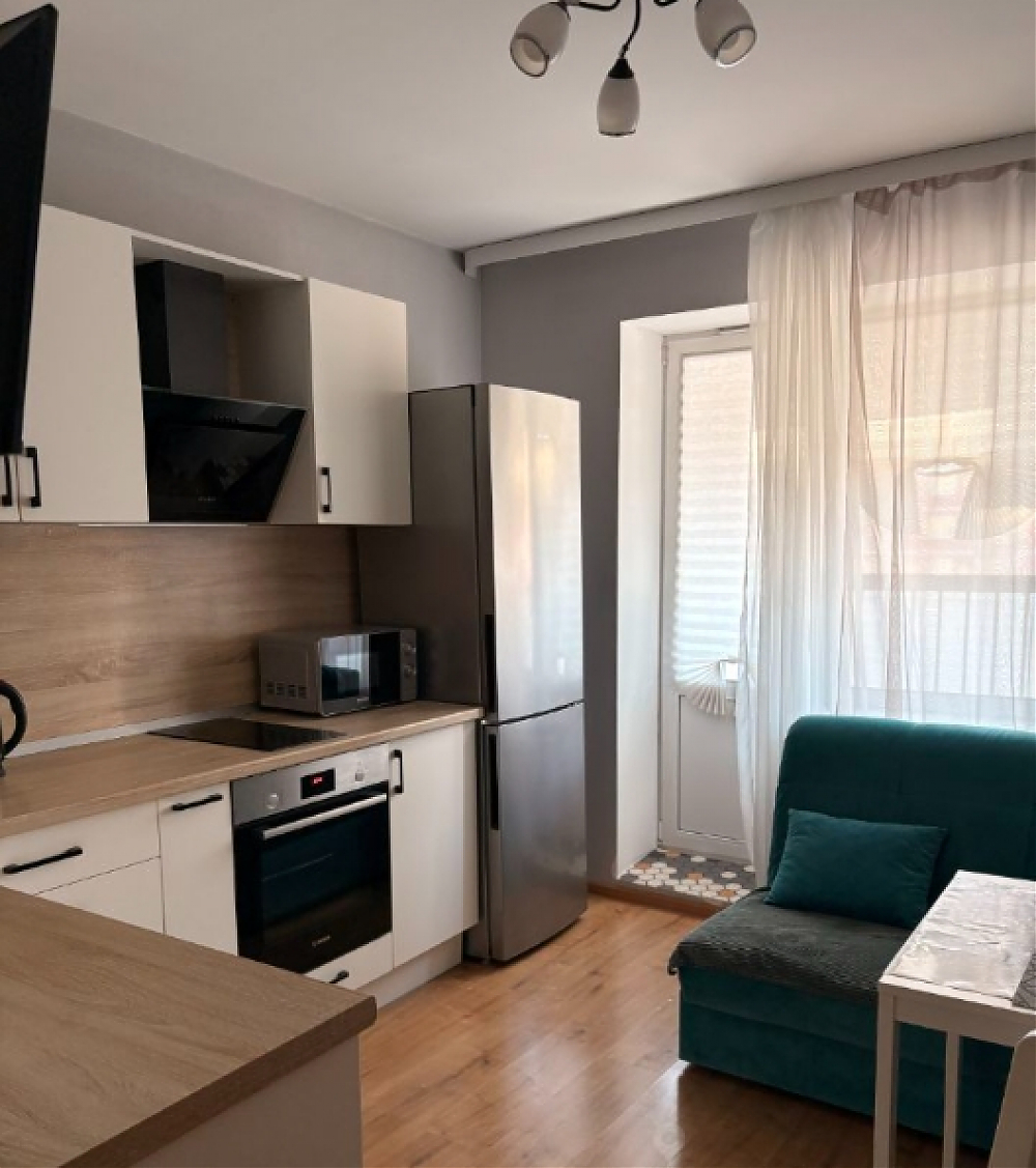 Для аренды на длительный срок предлагается уютная однокомнатная квартира в ЖК Живи! В Рыбацком с хорошим ремонтом.