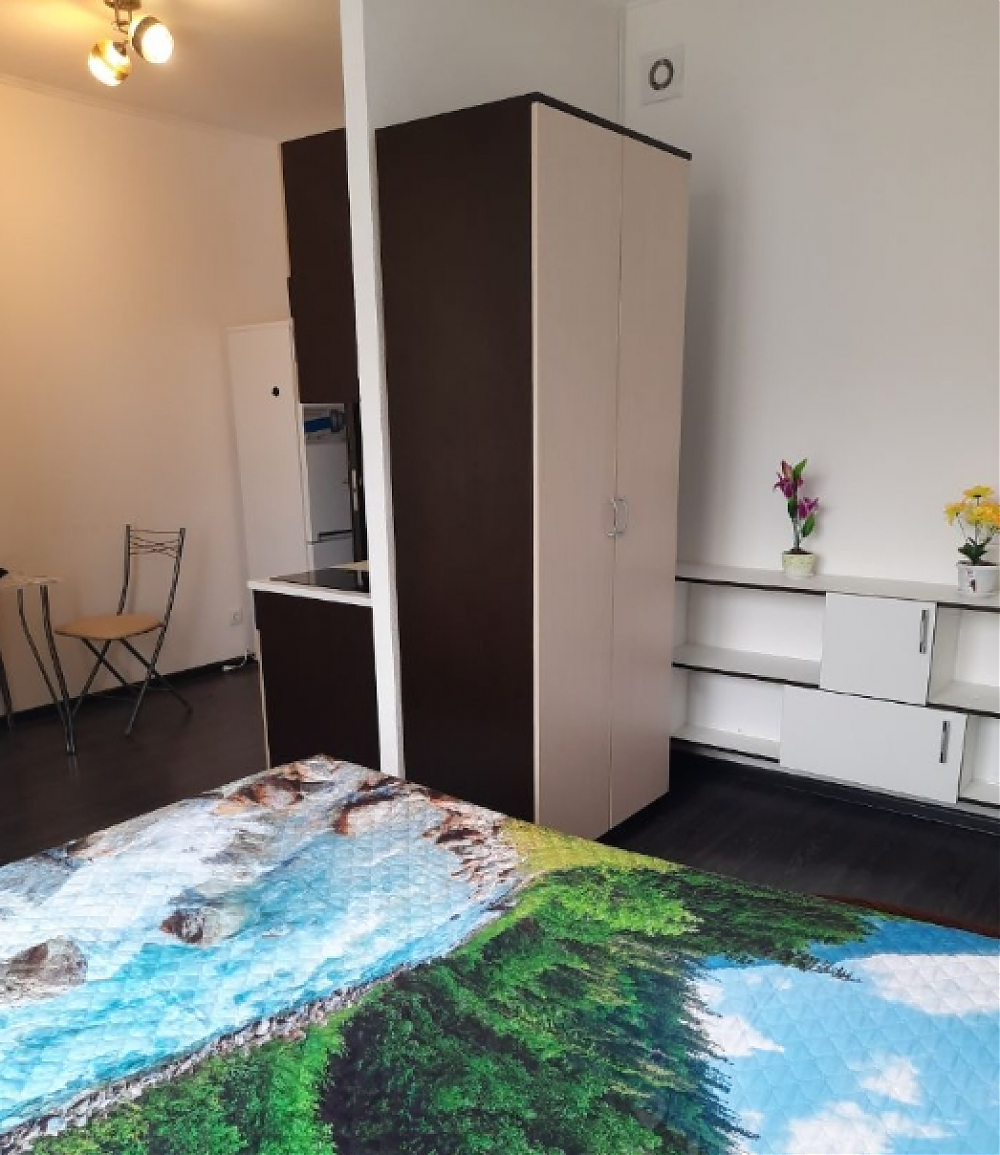 Сдаётся уютная студия в современном жилом комплексе, расположенном в 10 минутах езды на автомобиле от метро.