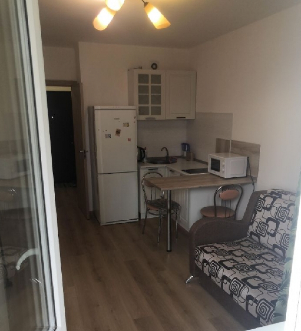 Сдаётся светлая квартира-студия в доме, находящемся в живописном, тихом месте на слиянии р. Славянки в р. Неву. От метро 17-20 минут пешком или 5 минут на транспорте! Есть детские, спортивные площадки. Просторный вестибюль. Мало квартир на этаже. Большой остекленный балкон смотрит на реку Славянку. Много парковочных мест. В квартире имеется все необходимое для комфортного проживания: Мебель: кухонный гарнитур с барной стойкой, двуспальный диван-кровать, стулья, комод, шкаф и прихожая.