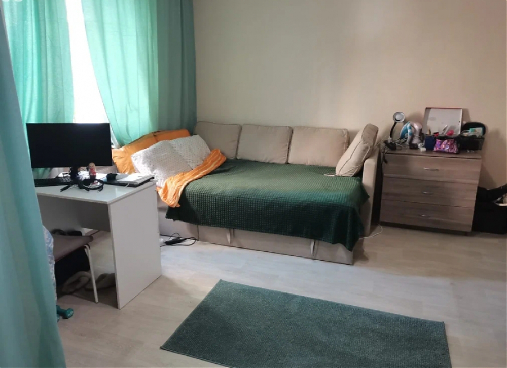 Сдам квартиру-студию на длительный срок в ЖК Прогресс. ТЦ "МЕГА-Дыбенко" 15 минут пешком. Площадь квартиры 28м(включая небольшой балкончик 1.8м), в новом доме(лет) Вся необходимая мебель есть: диван-кровать, столы, стулья, шкаф, комод, холодильник, стиральная машина, микроволновка, посуда.