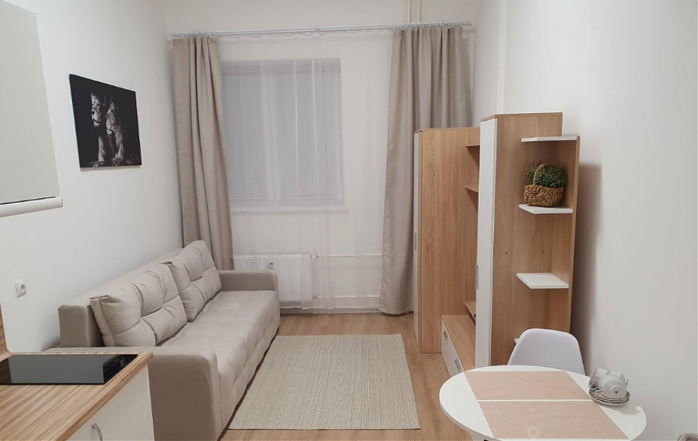 Сдаю (собственник) новую уютную квартиру- студию с мебелью и техникой на длительный срок в кирпично-монолитном доме 2024 г. на 1 этаже 16эт.дома, предпочтительно девушке или женщине (аккуратной, без вредных привычек, платежеспособной) без детей и животных. Дом расположен недалеко от р. Нева (прогулочная зона вдоль реки) и р. Славянка (100м от дома) в новом жилом районе Усть-Славянка в Рыбацком. До м. Рыбацкое пешком 20-25 мин., на автобусе 7 мин. (ходят каждые 2-3 мин), остановка в 5 минутах. До центра на метро 20 мин. До КАД 7 мин. на машине. До аэропорта на машине 25 мин. Рядом магазины - мини Лента (Гараж, в доме находится), Магнит (в соседнем доме), Пятерочка, Верный, п/в - Ozon, WB, YM, множество кафе и ресторанов. Мебель: прихожая с 2-ух створчатым шкафом, кухонный гарнитур, стенка, двухспальный диван (с независимыми пружинами для комфортного сна), стол со стульями, сушилка для белья. Техника: холодильник, варочная поверхность, вытяжка, микроволновка, электрический чайник, пылесос, стиральная машина, телевизор SMART TV. Стены окрашены в белый цвет, светильники с пультом с выбором различного цвета, кварц-виниловый паркет, ванная - плитка на полу и стенах. Окно высокое, выходит в тихий двор, повешены жалюзи и шторы блэкаут.