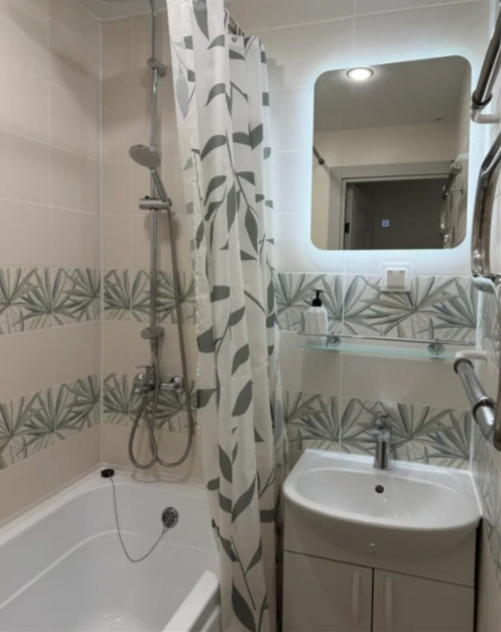 Квартира после ремонта, все новое. В квартире есть все необходимое холодильник, духовка, микроволновая печь, пылесос, стиральная машина, телевизор, гардеробная, интернет. Находится в спальном районе, рядом школа во дворе и детские садики, вид на прекрасный парк и ТЦ родео драйв.