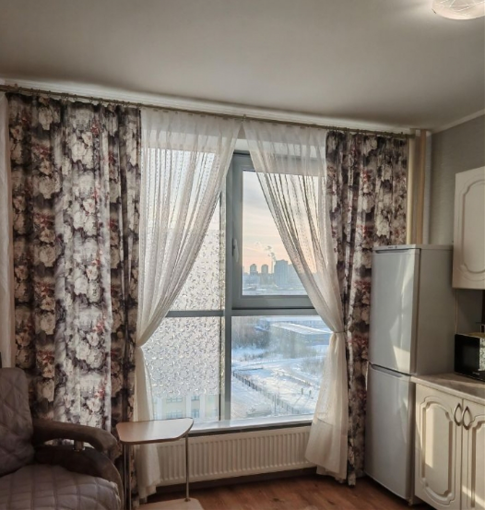 Сдаётся на длительный срок уютная светлая студия (26 кв. м.) в новом апарт-комплексе START, 10 минут пешком от ст. метро "Парнас". Панорамное окно (на 12 этаже) выходит на юго-запад, вид на ст. м. "Парнас" и башню Газпрома, с красивыми закатами. Благоустроенная охраняемая территория двора с круглосуточным видеонаблюдением. Имеется 4 пассажирских лифта и 1 грузовой. В комплексе есть кафе, магазины, бьюти-студии, массажные кабинеты, ПВЗ "ОЗОН", WILDBERRIES. В пешей доступности ЛЕНТА, ПЕРЕКРЁСТОК,поликлиника, фитнесс-центры, торговые комплексы и многое другое. В апартаменте сделан свежий косметический ремонт. Мебель в уютном классическом стиле располагает к комфортному проживанию в домашней обстановке. Наличие зеркал зрительно расширяет пространство и даёт больше света. Удобный диван-кровать имеет спальное место 140х200 см. Вместительные бельевые и платяные шкафы помогут вам разместить все ваши вещи. Кухонная зона имеет достаточно места для хранения необходимой посуды и сухих продуктов. Из техники-двухкамерный холодильник, микроволновая печь, эл. чайник, эл. плита на три конфорки с духовкой. Раскладной обеденный стол рассчитан на рассадку до 6 человек, в сложенном виде очень удобен для экономии свободного пространства. Есть небольшой прикроватный столик на колёсиках. Smart TV, интернет. Просторный совмещённый санузел(5,2м)располагает местом для сушки постиранного белья на напольной сушилке. Также вмещает умывальник, душевую кабину, унитаз, стиральную машину (с загрузкой до 7 кг белья).
