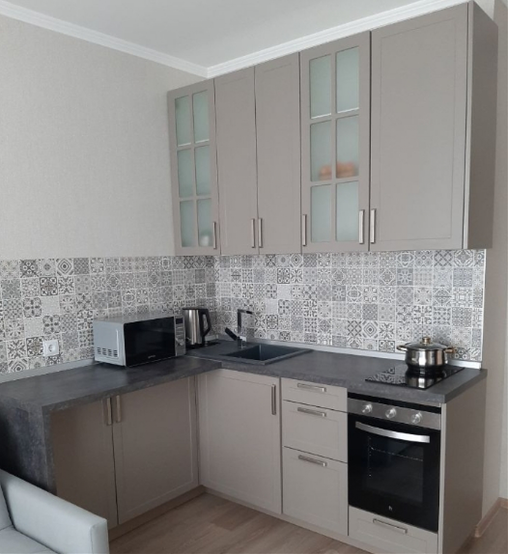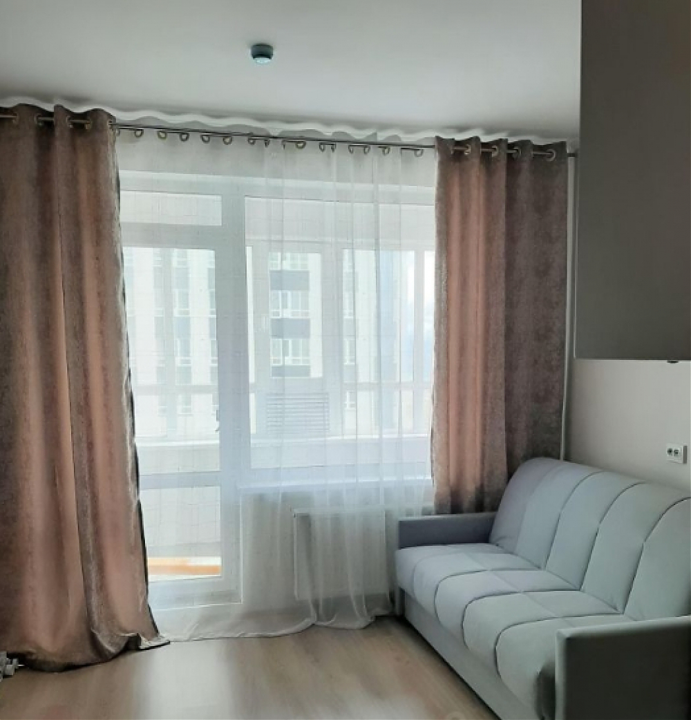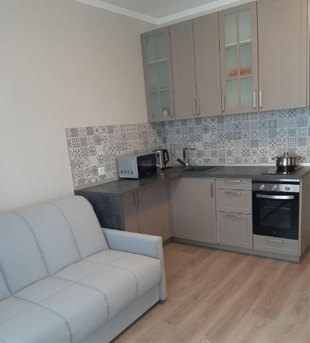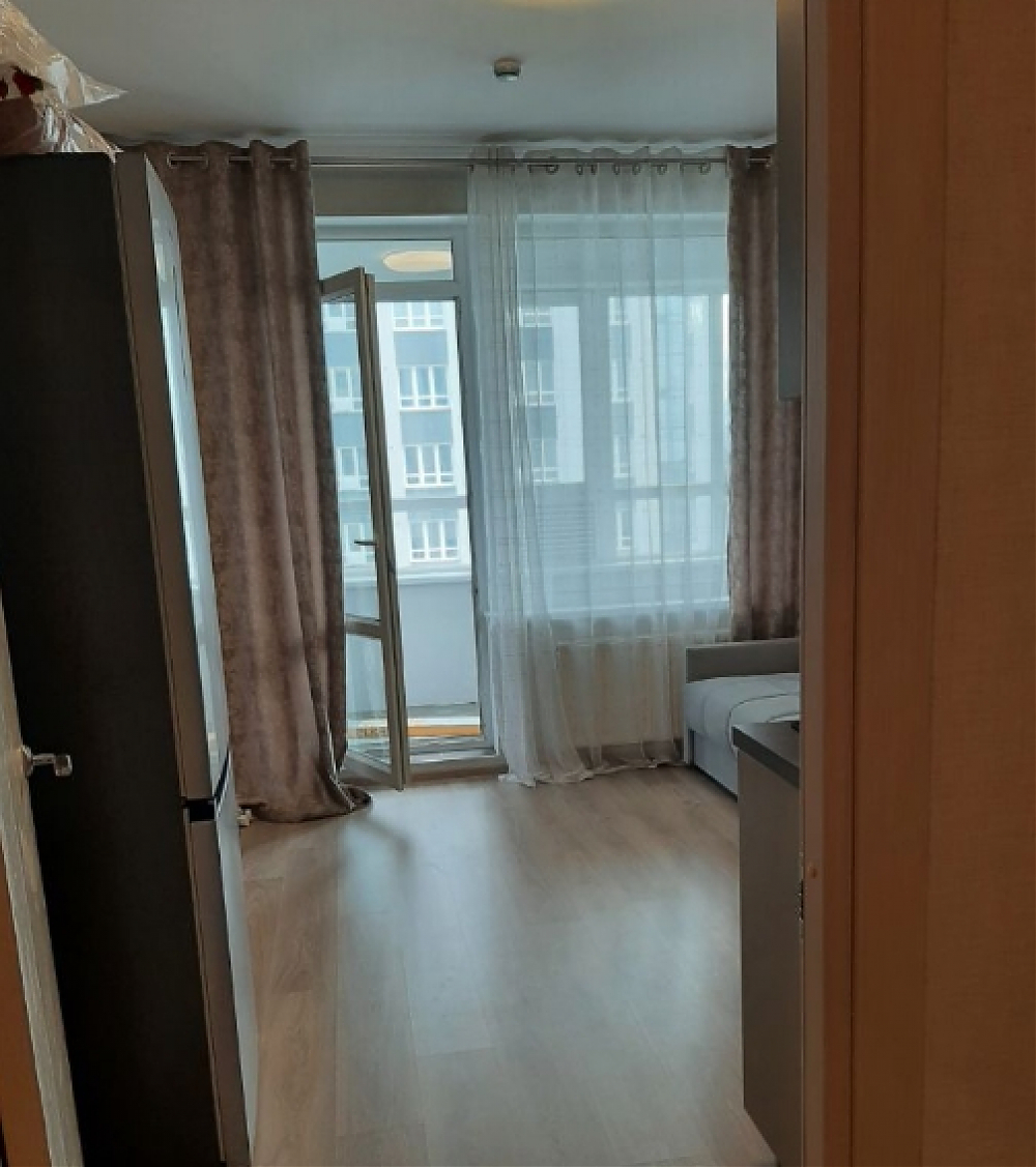 Студия в идеальном состоянии. Полностью готова к проживанию. Есть раздвижной диван, утюг, пылесос, плед. Полностью укомплектована кухня: встроенный духовой шкаф, микроволновка, чайник, посуда (кастрюли, сковорода, столовые приборы), большой двухкамерный холодильник. Большвя комфортная лоджия- 7 кв.м. (застелена ламинатом). сушилка для белья. Вместительный шкаф-купе в прихожей. Совмещенный санузел удобный, есть стиральная машинка, зеркало. Двор закрытый, въезд по приложению.