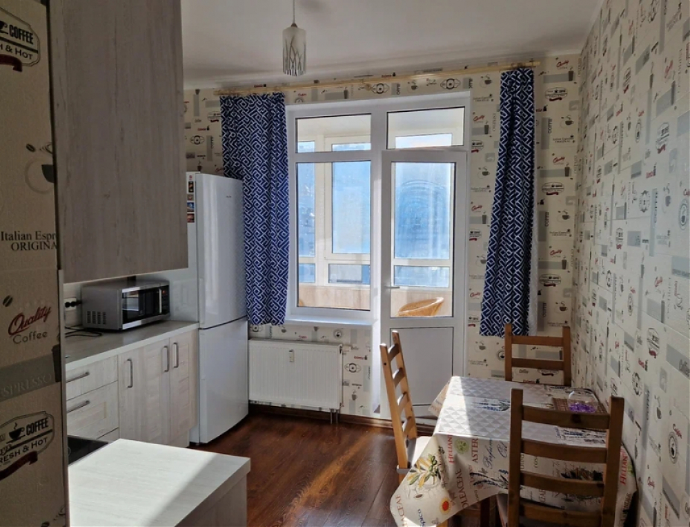 ЖК "Чистое Небо". Сдаётся однокомнатная квартира, ближайшее метро Комендантский проспект. Сдаётся на длительный срок по договору. Площадь 39 м2., окна во двор. В квартире есть вся необходимая мебель, электроплита, стиральная машина, холодильник, микроволновая печь, чайник, пылесос, утюг и гладильная доска. Балкон утеплён и с хорошей отделкой, можно использовать как маленькую комнату или рабочий кабинет даже зимой.