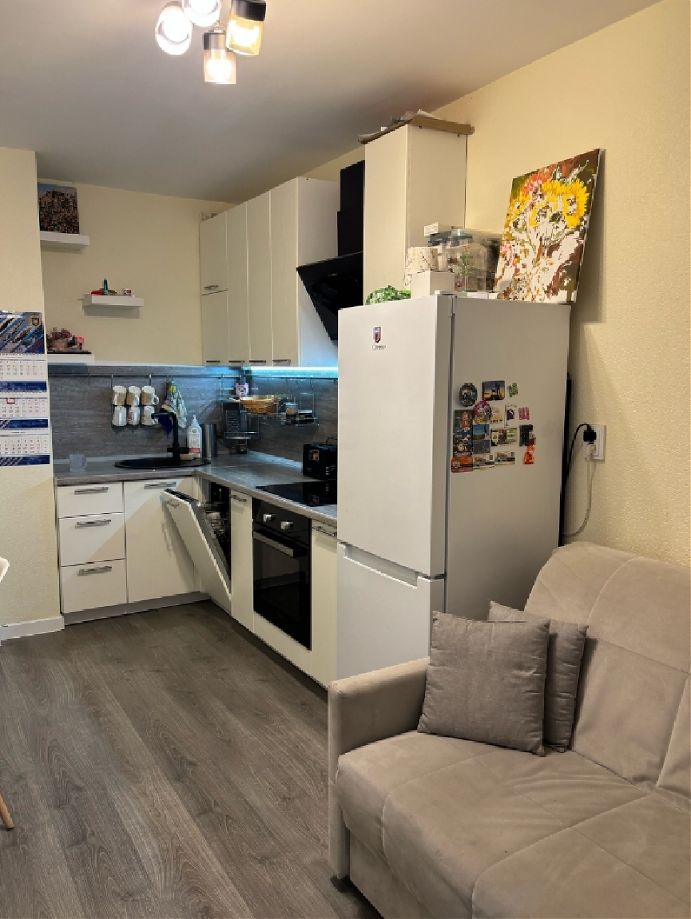 Вся необходимая мебель и техника уже есть: холодильник, посудомоечная машина, телевизор и стиральная машина. На кухне и в комнате установлена мебель для вашего удобства. В ванной комнате есть ванна, что позволяет расслабиться после трудового дня.Квартира на первом этаже, интернет проведен, поэтому можно оставаться на связи и работать из дома.