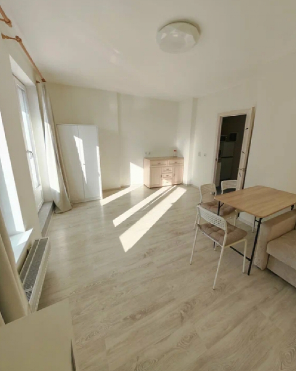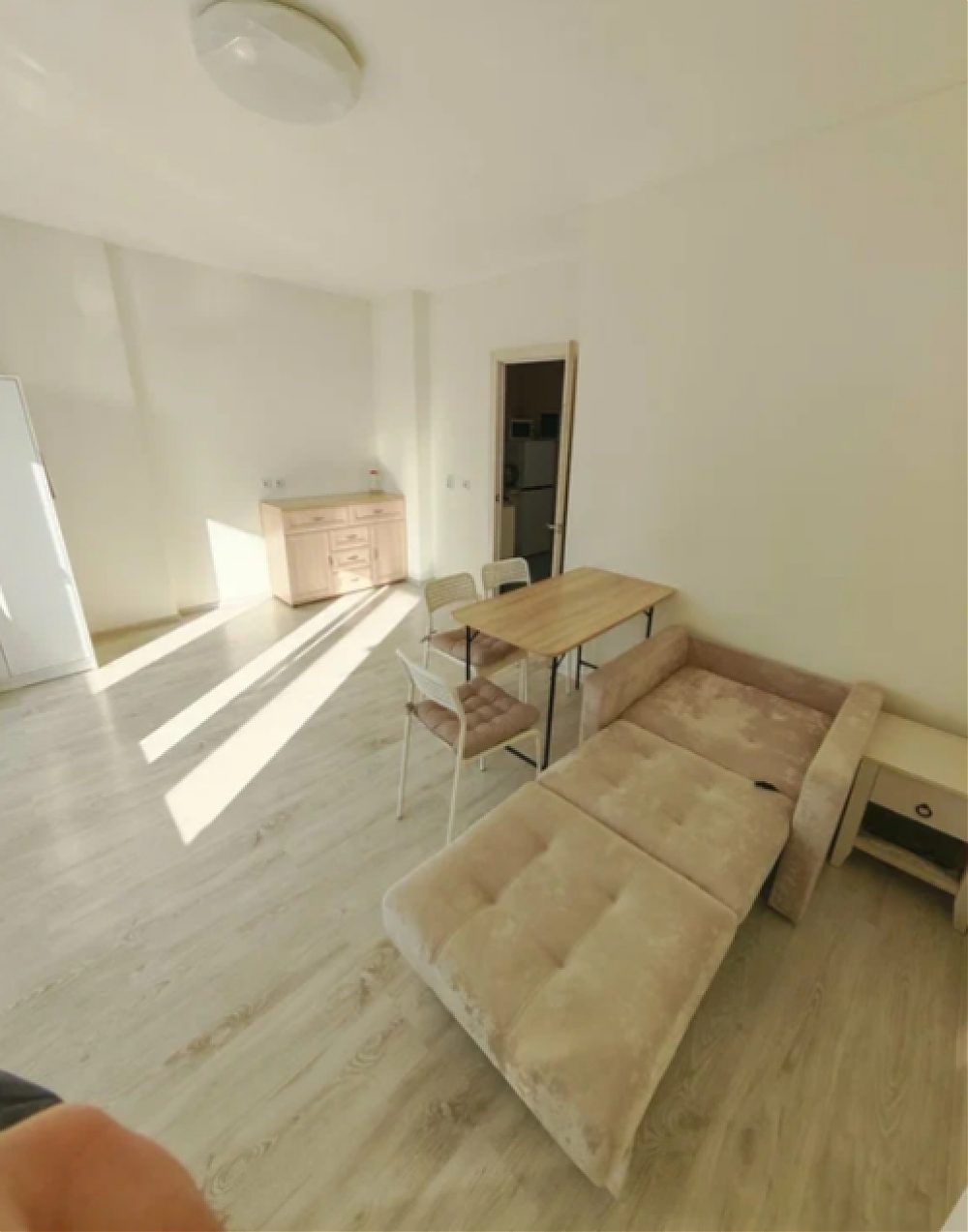 Сдается просторная студия на длительный срок. В одной минуте пешком остановка общественного транспорта, 10-15 минут до метро Комендантский проспект. В квартире есть все необходимое для комфортного проживания. На кухне: посуда, чайник, холодильник, СВЧ печь, варочная панель, духовой шкаф, вытяжка. Санузел оборудован большой ванной и стиральной машиной. Для хранения вещей предусмотрено два комода и шкаф. Имеется wifi роутер.