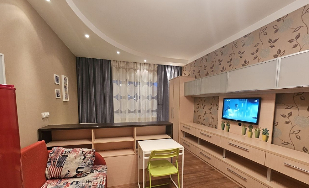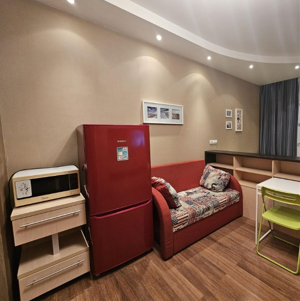 Уютная студия с полной меблировкой. В квартире: полноценная кровать с ортопедическим матрасом, раскладной диван, телевизор. Оборудованная кухня: посудомоечная машина, микроволновая печь, стеклокерамическая варочная панель, холодильник. Санузел с полноценной ванной. Стиральная машина.