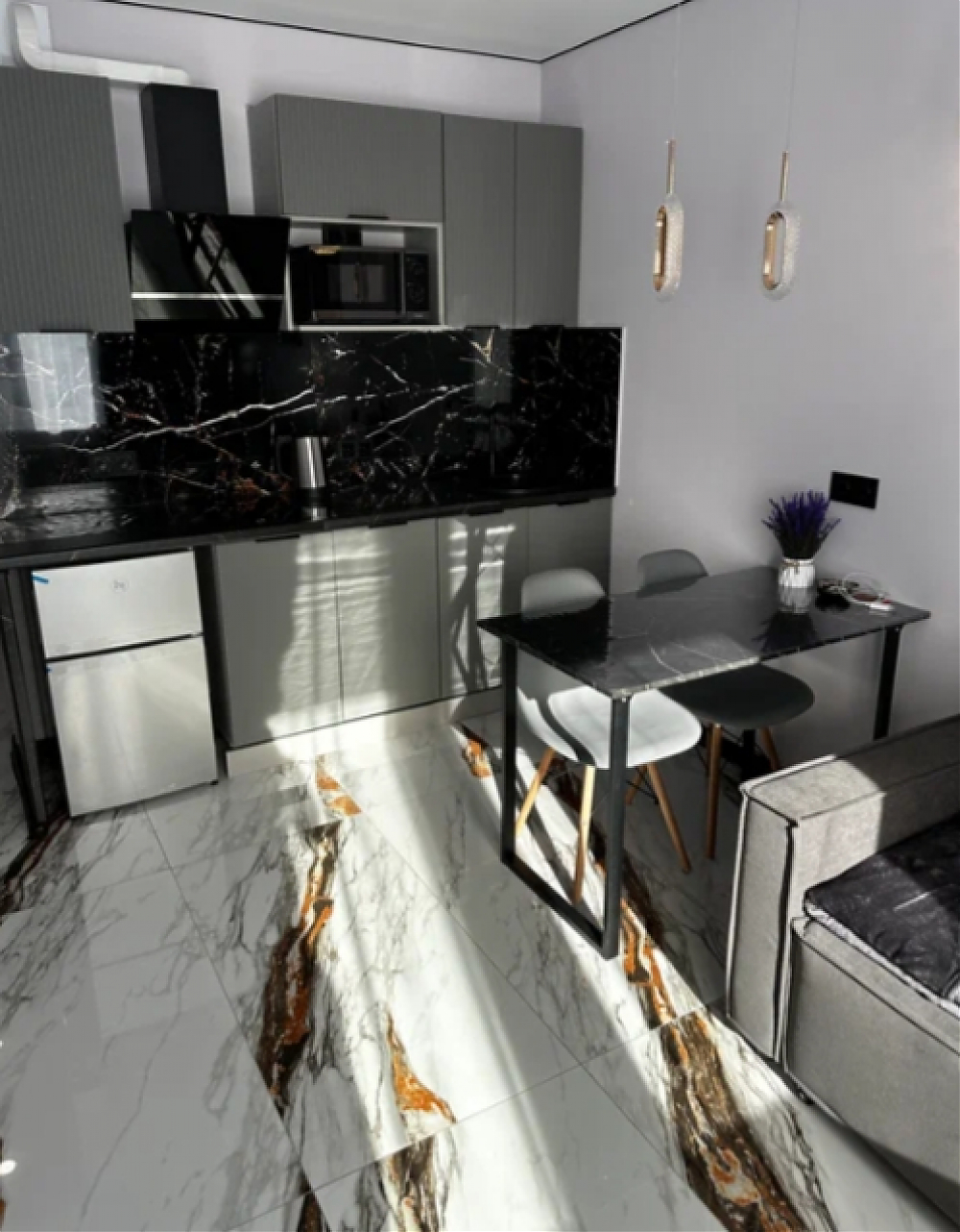 Сдается стильная студия с дизайнерским ремонтом на 7 этаже нового дома 2024 года постройки. Сдается впервые. В квартире выполнен ремонт с использованием качественных материалов. Просторная лоджия. Кухня оборудована всем необходимым: встроенная варочная панель, микроволновая печь, холодильник, вытяжка и современная мебель. В санузле установлена стиральная машина, вентилятор,душевая с тропическим душем и инсталяция. Во всей квартире теплый пол. Много точек освещения и розеток. В комнате установлен удобный диван, раскладывается в разных комбинациях. Вместительный шкаф встроен в коридоре. Дом оснащен пассажирским и грузовым лифтами, подземной парковкой. Рядом находится магазины, рестораны, кафе, все необходимое для комфортного проживания. Метро Девяткино, в шаговой доступности 15 минут. Удобный выезд на КАД. Автобусная остановка до метро Проспект Просвещения. Проживание с детьми, животными и курение запрещены.