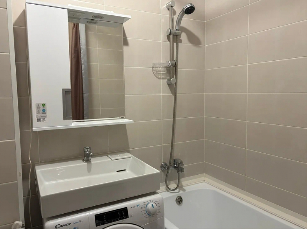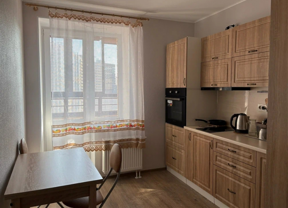 Светлая квартира с мебелью и современной техникой (холодильник, стиральная машина, духовка, СВЧ).