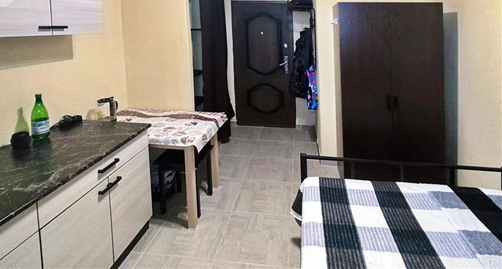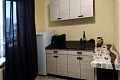 Комната с мебелью и холодильником, после ремонта, всё новое. Удобная кровать 120х190 см. Квартира коммунальная, дежурства. Стиральная машина (общая на три комнаты). Соседи хорошие, молодые люди. В коридоре в дневное время могут шуметь дети, бегает соседская собачка.