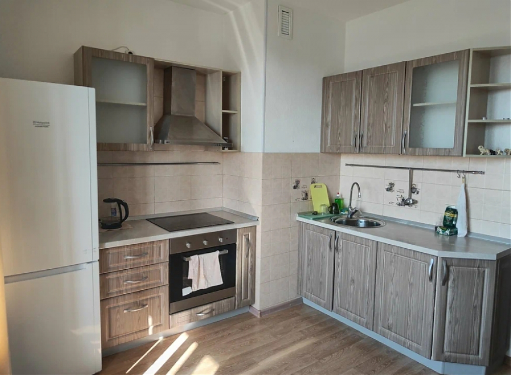 Сдаётся светлая, просторная 1-комнатная квартира на длительный срок. В шаговой доступности метро, магазины, большая парковка во дворе, удобный выезд на КАД. В квартире: кухонная мебель, холодильник, плита, духовой шкаф, стиральная машина, диван, плательный шкаф. Квартира сдаётся порядочным, платежеспособным арендаторам.