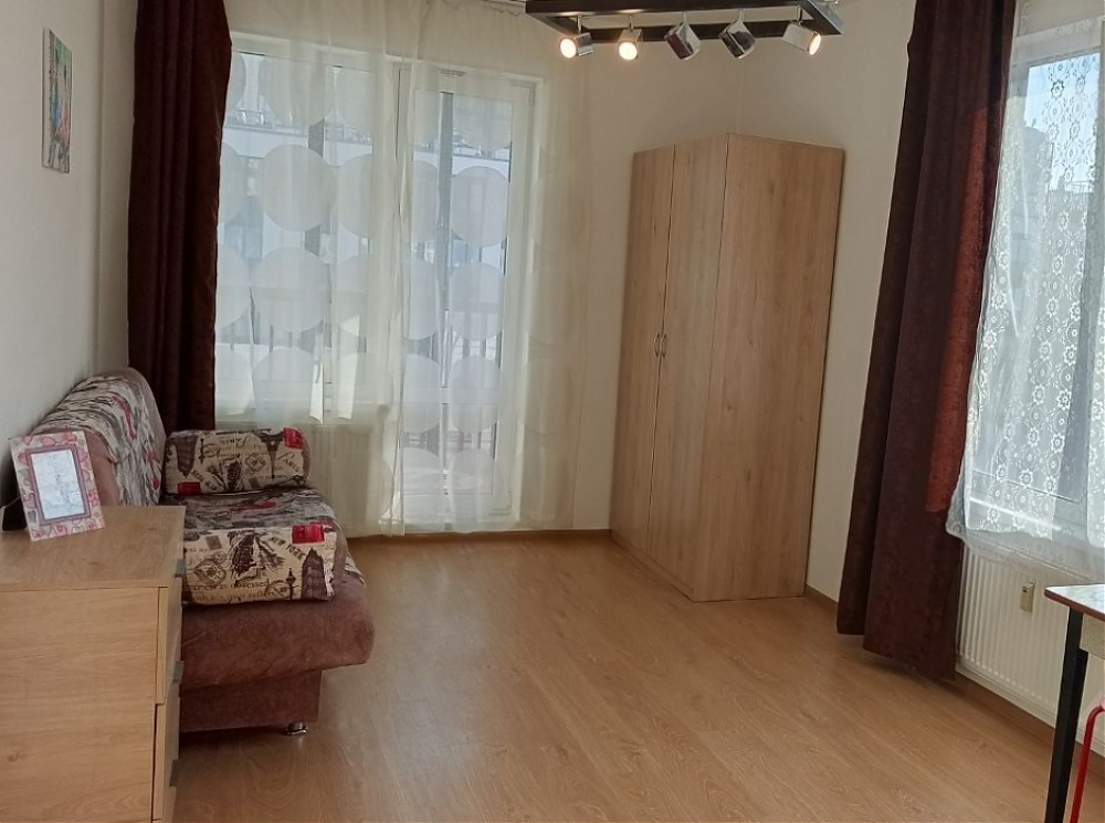 Сдается от собственника на длительное время светлая и уютная студия. Окна выходят на закрытый двор. В комнате два окна, есть застекленная лоджия. В наличии холодильник, стекло керамическая варочная панель, микровалновая печь, кухонный гарнитур, раскладывающийся диван, комод, шкаф, стол и стулья. В коридоре шкаф-купе. Рядом остановка общественного транспорта, магазины, пекарни, поликлиника, до станции метро "Московская" пешком 15 минут.