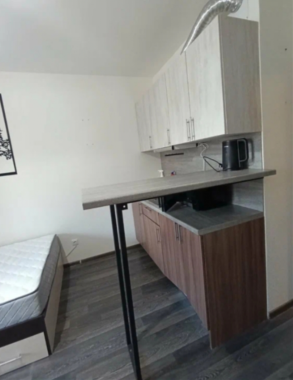 Сдаётся студия на длительный срок в монолитном доме 2021 года постройки. Просторная лоджия с видом во двор. В квартире выполнен косметический ремонт, установлены шкафы и необходимая мебель. Из техники имеется холодильник, стиральная машина, микроволновка, индукционная варочная панель. В санузле современная сантехника. В комнате есть удобная кровать, барная стойка. Для вашего удобства доступен Wi-Fi. Парковка открытая во дворе. Курение запрещено, но можно проживать с детьми и питомцами.