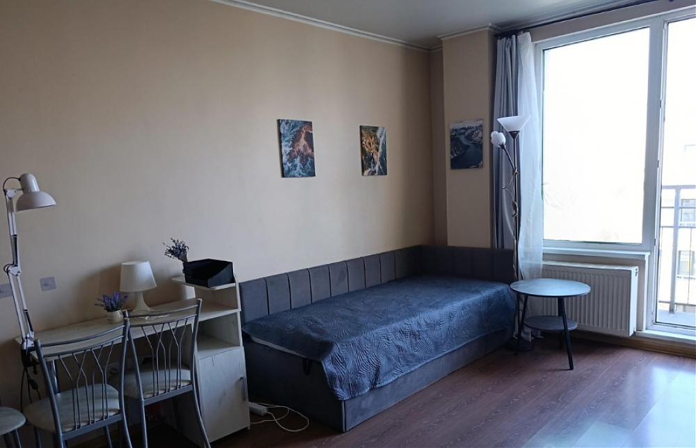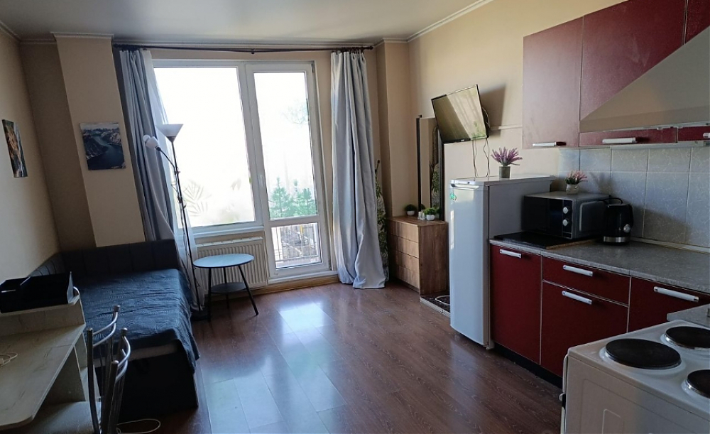 Светлая, тихая, новая студия. Дом расположен в шаговой доступности от финского залива, на территории жилого комплекса имеется развитая торговая инфраструктура: магазин продуктов 24 часа, пекарня и пр. Можно с животными. В квартире имеется всё необходимое для комфортного проживания: холодильник, стиральная машина, электрическая 4х комфортная плита с духовкой, микроволновая печь, удобный 1.5 спальный диван.