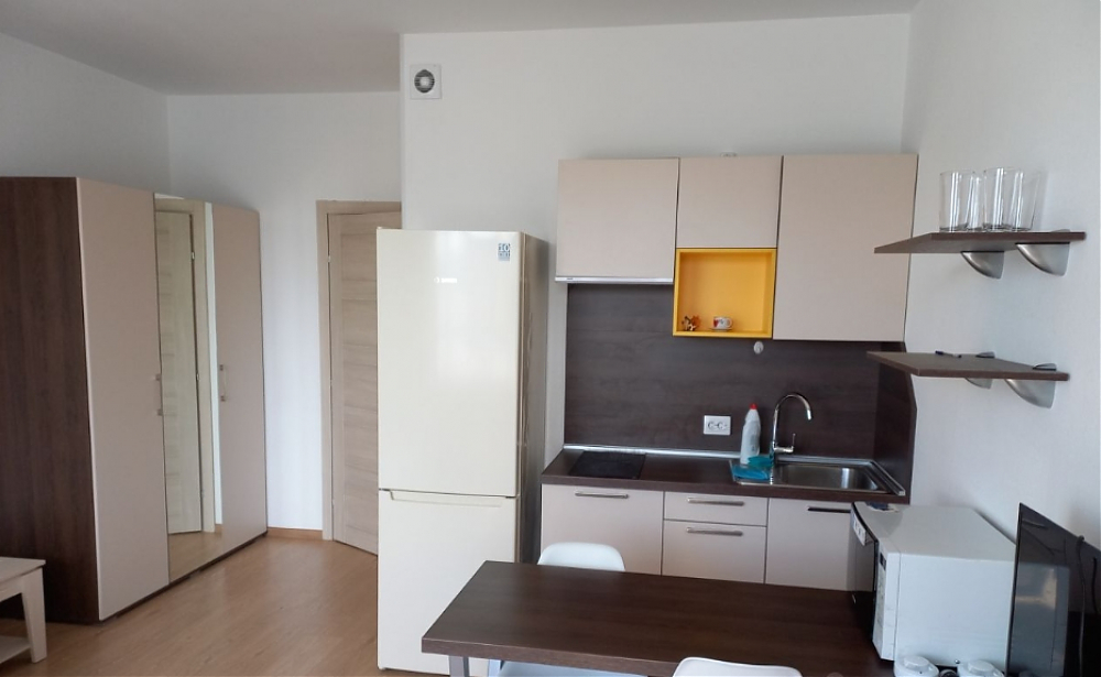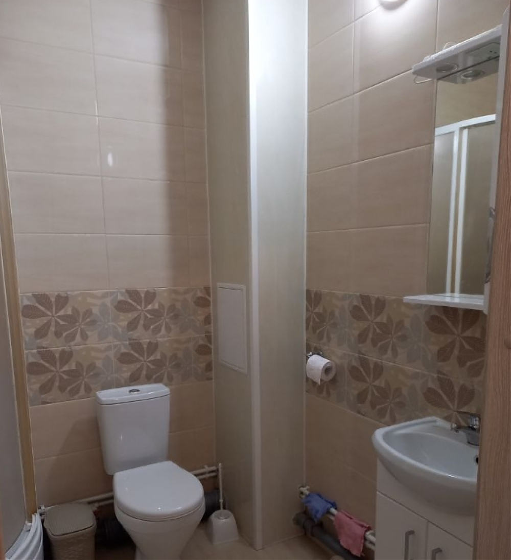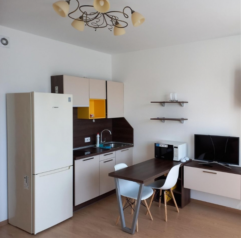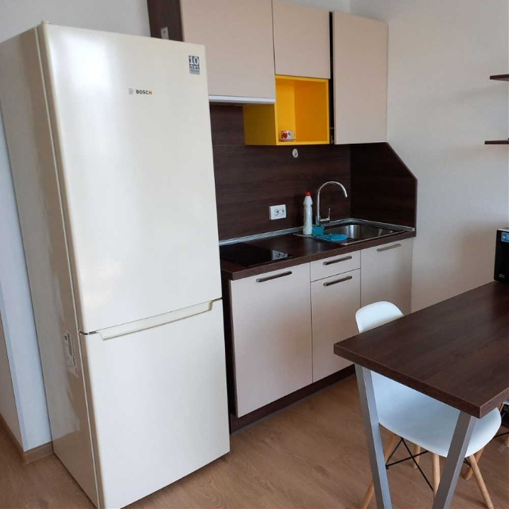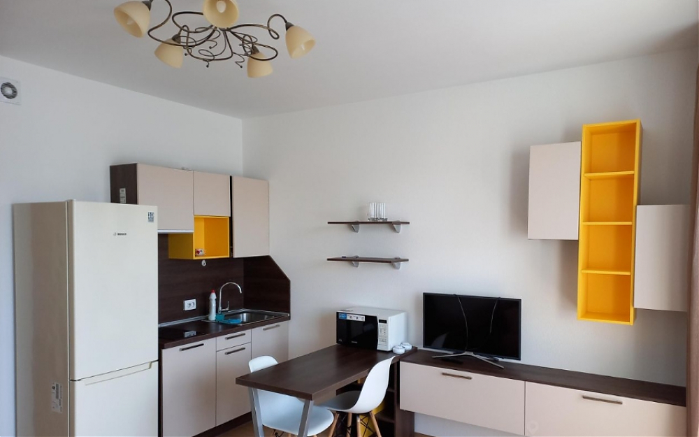 В квартире сделан косметический ремонт. Пространство организовано удобно и функционально. В комнате и на кухне есть вся необходимая мебель. Также в наличии холодильник, телевизор и стиральная машина. Санузел совмещённый, с современной душевой кабиной. Лоджия позволяет насладиться свежим воздухом и видом на город.