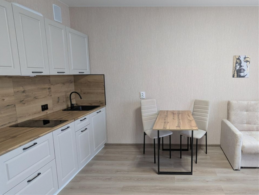 Есть все необходимое для комфортного проживания: раскладной двухспальный диван, шкаф с удобным хранением, гардеробная, кухонный гарнитур с подсветкой и вытяжкой, врезная варочная панель, большой холодильник, стиральная машина, телевизор.