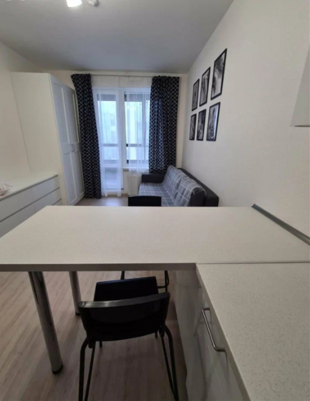 Сдается уютная студия на длительный срок на 17 этаже в кирпично-монолитном доме. Квартира полностью укомплектована всей необходимой мебелью и техникой. Есть пассажирский и грузовой лифты. Просторная лоджия с остеклением. Во дворе закрытая территория с площадкой и зонами отдыха. В доме находятся продуктовые магазины и кафетерии.