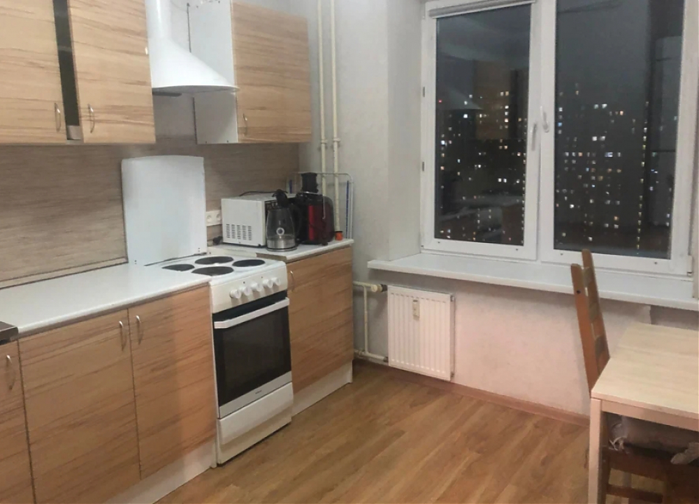 Скромная однушка (не студия), оборудованная всей необходимой техникой. Так же двуспальная "икеевская" кровать, два объемных шкафа-купе (в коридоре и в комнате). Подключен интернет от "скайнет" (в заморозке). Прямо во дворе две школы и один детский сад, в пятиминутной доступности еще одна школа и три детсада. Новая шикарная поликлиника на Толубеевском проезде. С развлечениями потруднее - кинотеатров пока нет, баров всего два, но совсем недалеко (10 минут пешком, не больше). До "Мега-Парнас", на машине минут 20, на автобусе подольше (минут 40, с учетом дойти до остановки и дождаться автобуса). В идеале если вы аккуратные и чистоплотные молодая пара, с животными можно (поэтому требование к чистоплотности), с детьми зависит от возраста ребенка (просто исходя из метража самой квартиры).