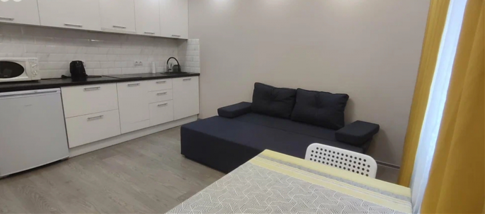Сдаётся уютная квартира-студия,с качественным ремонтом,бытовой техникой,готовая к проживанию. Стиральная машина,телевизор,плита,микроволновка,роутер,кухонная вытяжка,тёплый пол в санузле. Удобная прихожая с просторными шкафами для одежды и вещей. Дополнительные удобства обсудим по необходимости. Два лифта,грузовой и пассажирский. В пешей доступности большая Лента,Леруа Мерлен. Сдаётся только,с проживанием не менее полугода! Без животных. Предпочтение отдадим молодой паре или девушке.