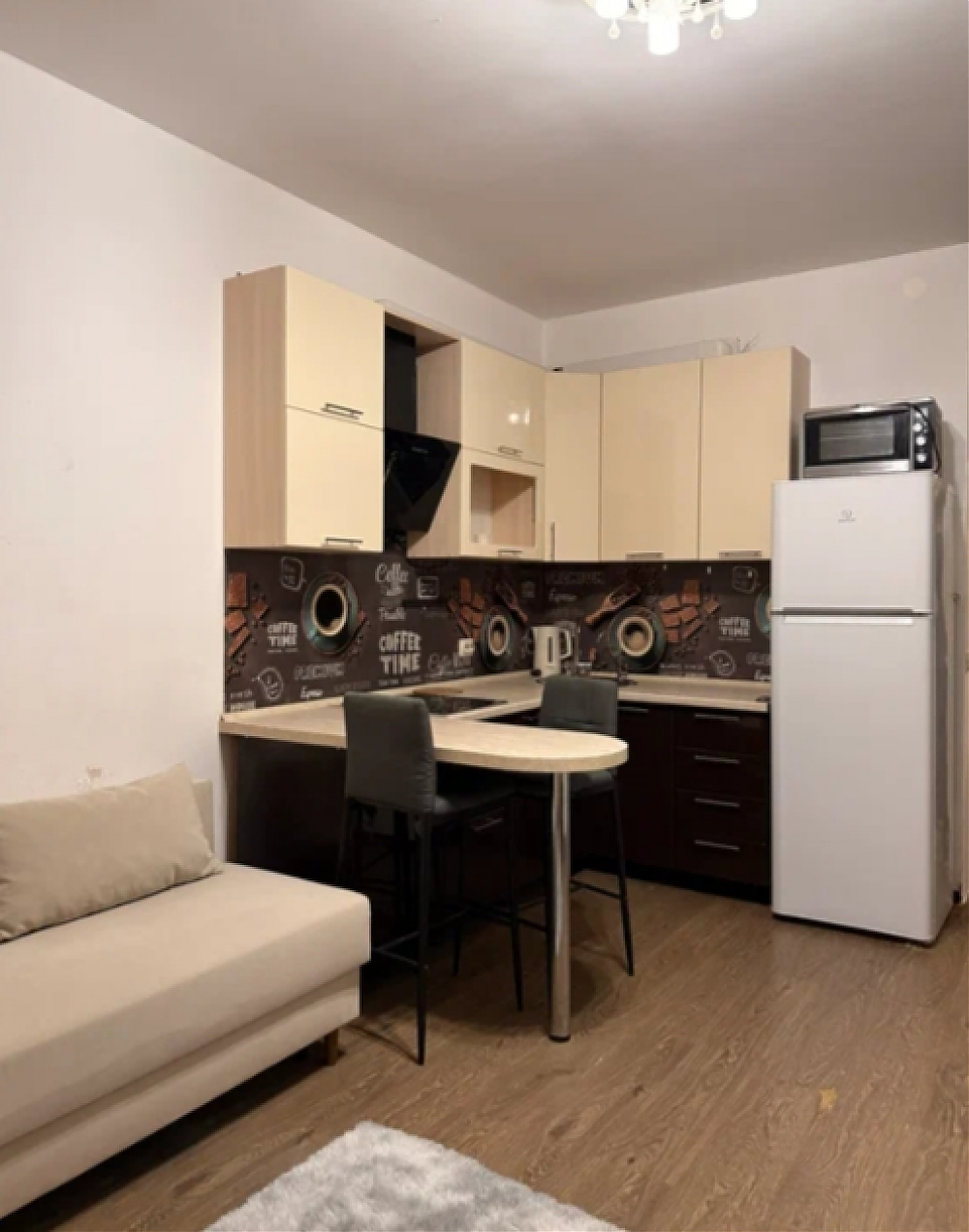 Сдается студия на длительный срок. В квартире выполнен косметический ремонт, что создает уютную атмосферу. Просторная комната оборудована всем необходимым: удобный диван, шкафы для хранения вещей и барный стол. Из мебели также есть вместительный шкаф. Кухня оснащена современной техникой: холодильник, варочная панель . Установлены удобные барные стулья и обеденный стол. Санузел совмещенный, оснащен ванной и стиральной машиной. Балкон застеклен, что позволяет наслаждаться свежим воздухом даже зимой.