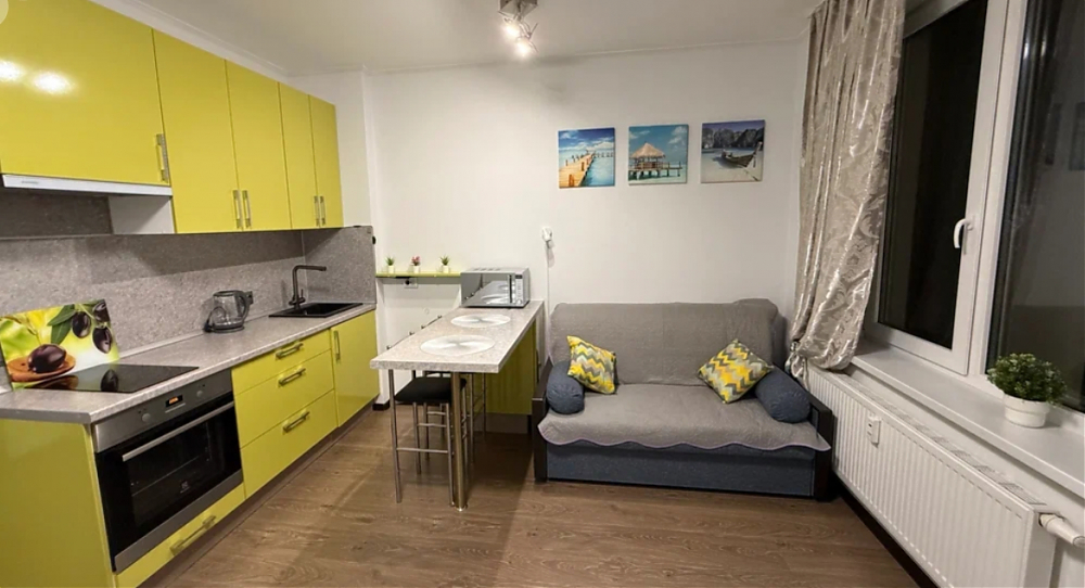 Уютная квартира-студия. Сдается впервые! С хорошей планировкой, не вытянутая, а квадратная комната. Хороший ремонт, встроенная кухня с техникой. Есть даже духовка! Ищем очень хороших и аккуратных людей, порядок и бережное отношение обязательно!Желательно семейная пара, ребятам с университета МВД будем особенно рады) Закрытый двор, рядом напротив парадной торговый центр, спорт, магазины, лента, кафе, все в доступности. Идеальное месторасположение во всем Солнечном городе, рядом сквер, остановка экспресс автобуса и до метро без остановок 20 минут. Курение строго запрещено! А так же без животных!